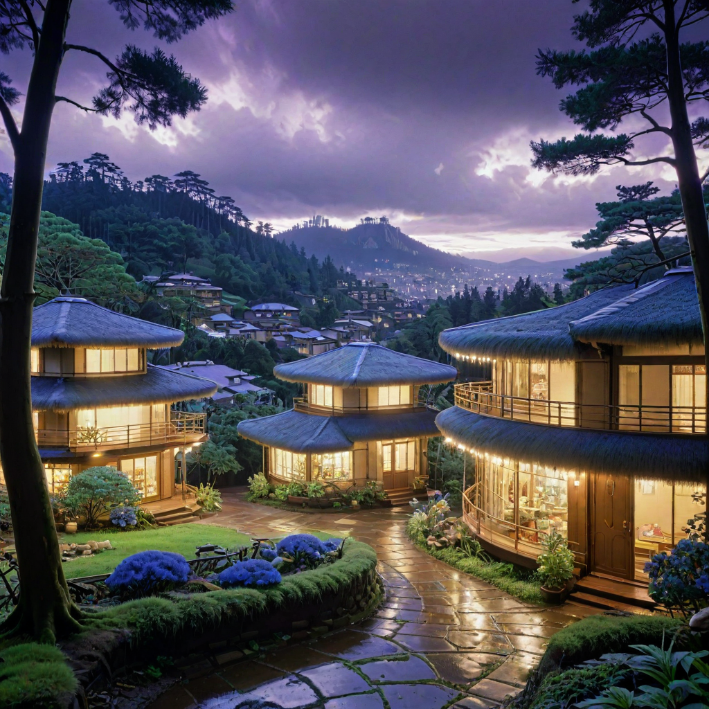 (stylized by Shigenori Soejima:0.8) and (Masamune Shirow:1.3) and (Yasutomo Oka:0.8) , anime key visual, stylized, landscape of a (Valparaiso:1.3) from inside of a Home, it is very pleasant and Meandering, British forest with Mushroom, Thunderstorm, Fantasy, Art Deco, Pearlescent lighting, 35mm, Albumen, Gold Leafing, Gradient and Neutral flakes, extremely beautiful, 8K