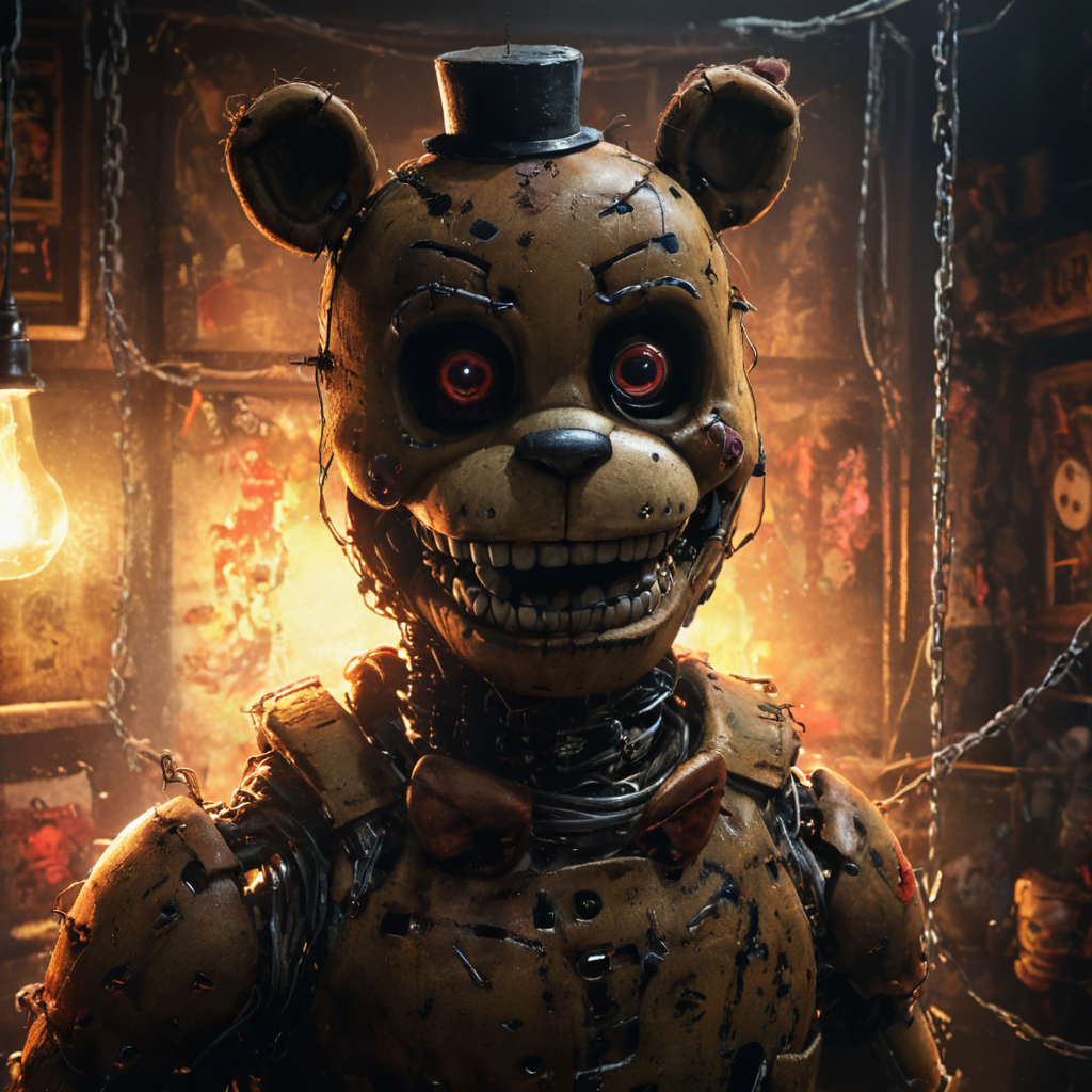 (masterpiece:1.4),Mid Shot Photo, five nights at freddy's, animatronic, exposed wiring, broken, horror:1.2, digital painting, smooth lines, detailed background,Cinematic Lighting,cg trending art, <lora:xl_more_art-full_v1:1.2> <lora:more_details:0.89>