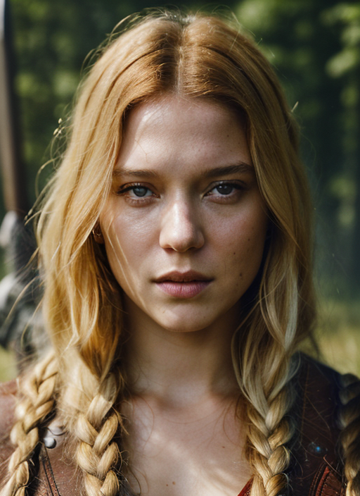 A stunning intricate full color portrait of (sks woman:1) as (viking warrior), (barbarian), epic character composition, by ilya kuvshinov, alessio albi, nina masic, sharp focus, natural lighting, subsurface scattering, f2, 35mm, film grain, <lora:locon_leaseydoux_v1_from_v1_64_32:1>