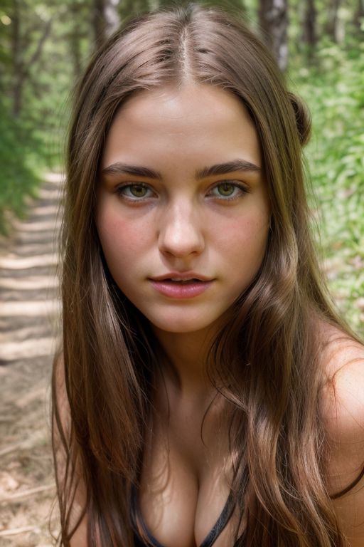 photograph, beautiful, gorgeous, petite, 18yo girl, hiker, on trail, blonde hair, ponytail, full body, detailed eyes, cleavage, gasping, seductive, rolling eyes, drooling, kneeling, orgasm, RAW photo, high quality, 35mm photograph, film grain, professional, masterpiece, 4k, highly detailed, byz