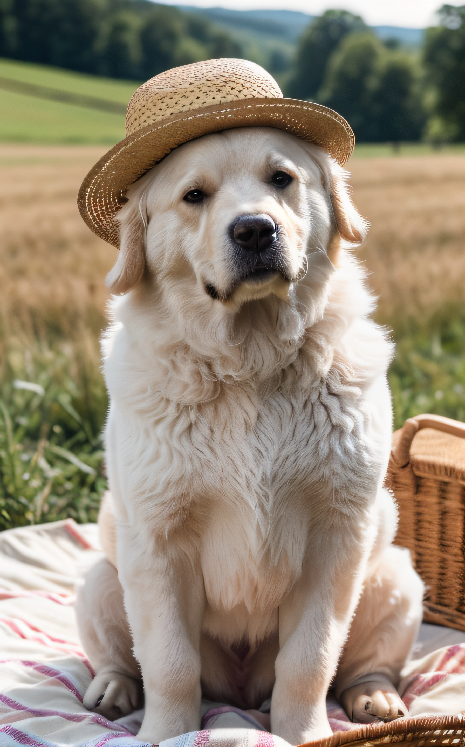 cinematic film still (top-quality, 8K, masterpiece:1.3) A photo of a fluffy, teddy bear, sitting on a picnic blanket, wearing a tiny straw hat, in a sunny meadow taken with a macro lens highly detailed, detailed skin, soft natural lighting <lora:epi_noiseoffset2:1> . shallow depth of field, vignette, highly detailed, high budget, bokeh, cinemascope, moody, epic, gorgeous, film grain, grainy