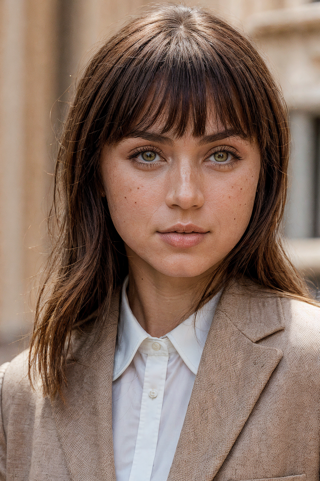 RAW photo of skswoman, subject, 8k uhd, dslr, soft lighting, high quality, film grain, Fujifilm XT3 wearing luxury clothing , with light brown Side-swept bangs , background vatican city
