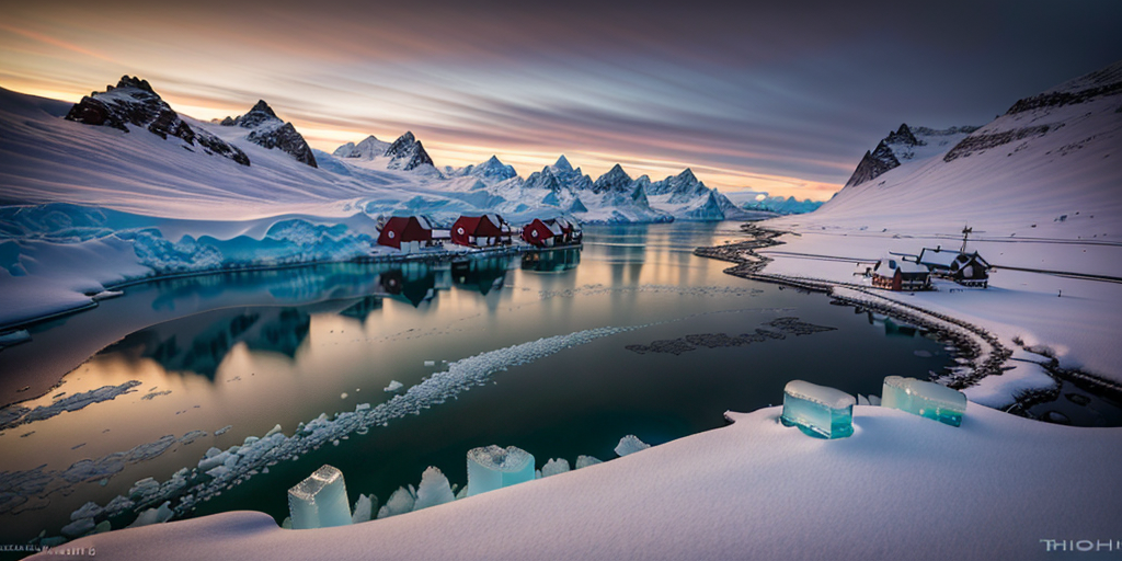 RAW photo, (masterpiece:1.3), subsurface scattering, heavy shadow, (high quality:1.4), (intricate, high detail:1.2), professional photography, HDR, High Dynamic Range, realistic, ultra realistic, photorealistic, high resolution, film photography, ambient lighting, atmospheric effects, OverallDetail, Ice, a small Inuit village with a harbor, frozen lake, vivi, epiCPhoto