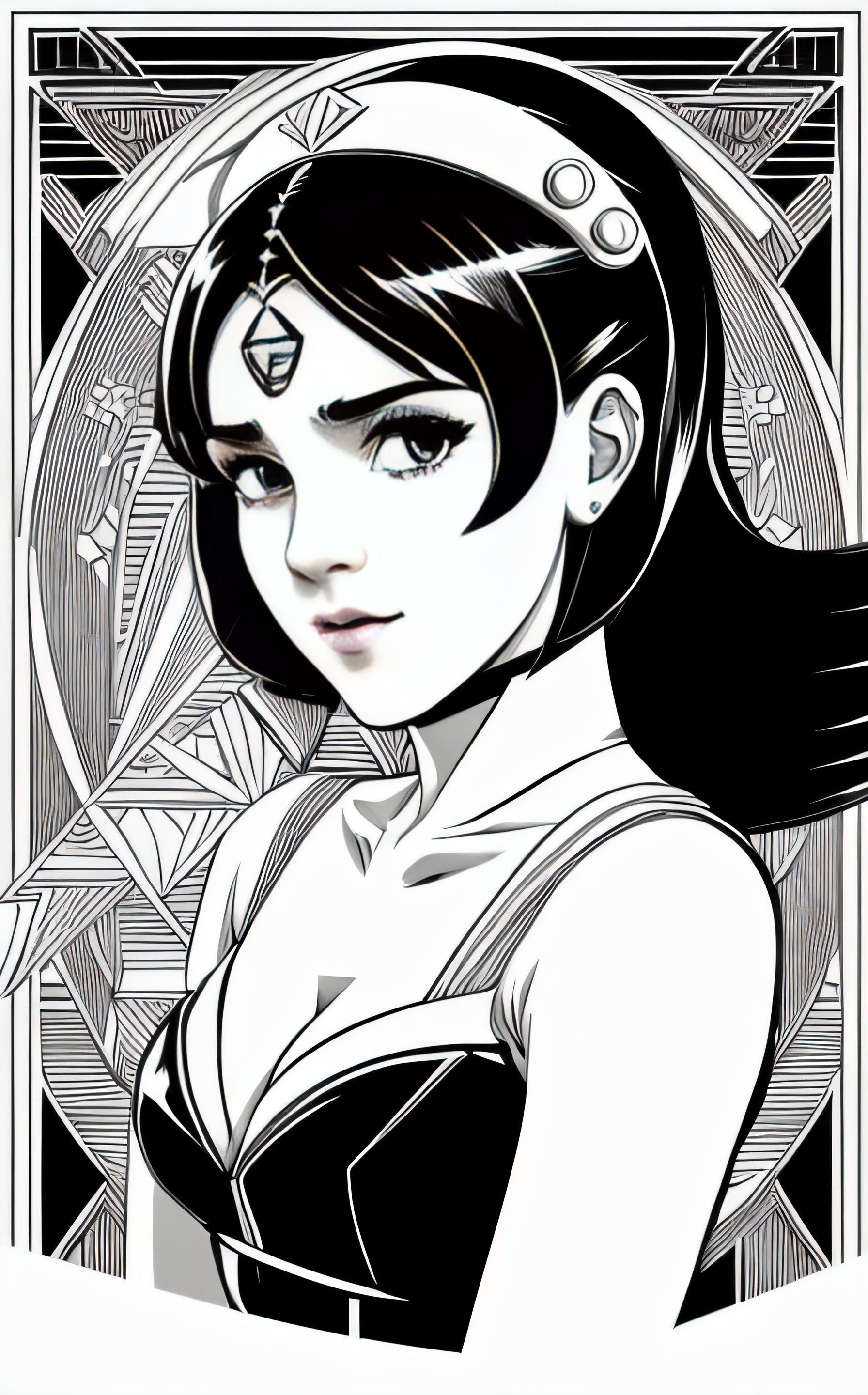 anime artwork abstract black and white vector illustration, monochrome clean lines, curves, (art deco style:1.3), geometric, emma watson, detailed masterpiece <lora:epi_noiseoffset2:1> . anime style, key visual, vibrant, studio anime, highly detailed