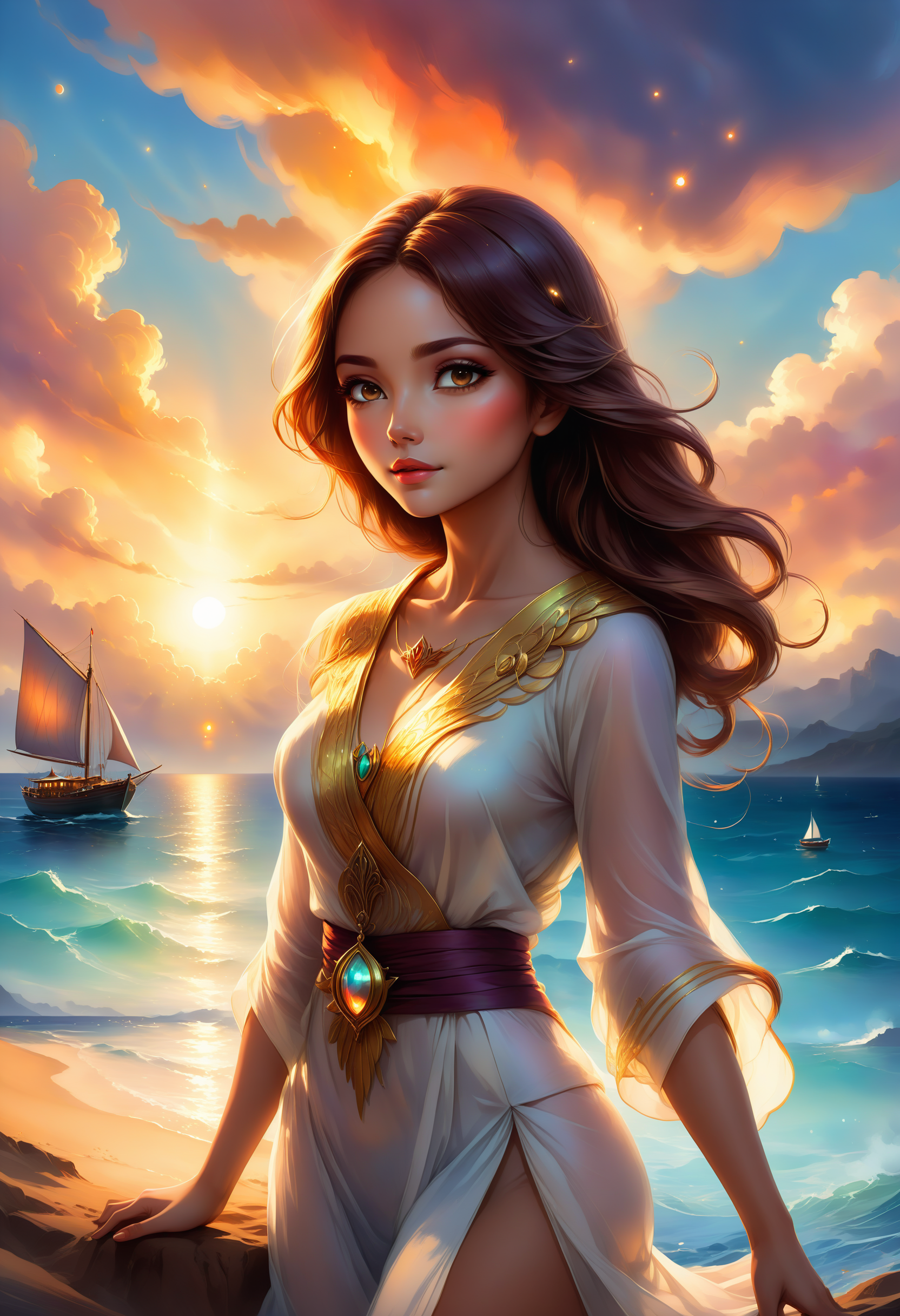 Tilt-shift photo of Tilt-shift photo of (watercolor painting:1.3) sunset,high tide,golden sand,calm sea,colored clouds,rays of light break through the clouds,in the reflection of light on the water,a sailing boat is a fish,the sea shimmers with bright colors. vibrant,beautiful,painterly,detailed,textural,artistic,lucid,<lora:more_details:1>,ultra quality,ultra detailed,intricate details,8k,hdr,rim light,