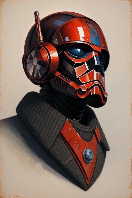 masterpiece,best quality,<lora:tbh262-:0.8>,illustration,style of soviet, portrait of star wars robots