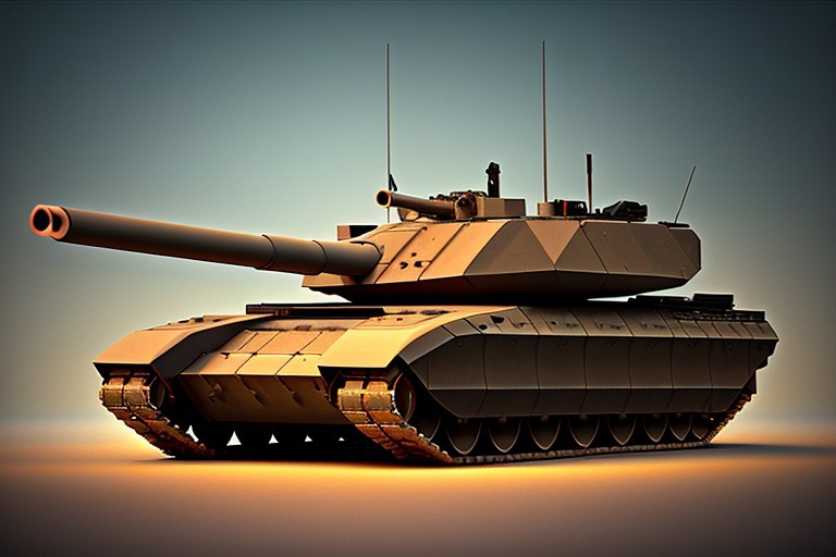 tank, 1tank. day light, full view, red lights., futuristic city street. street lights. big gun, side view