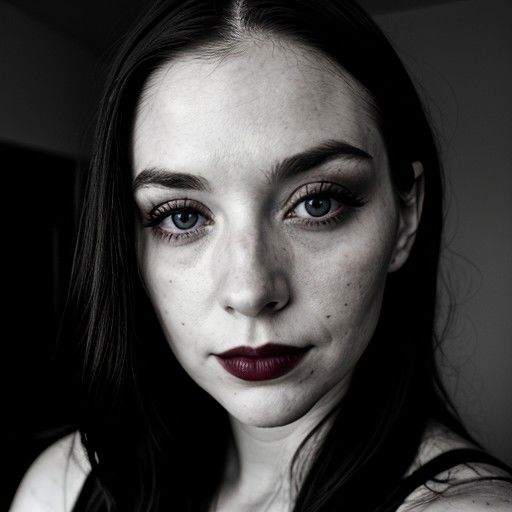 dark shot, face photo of 28 y.o pale woman, makeup, film grain