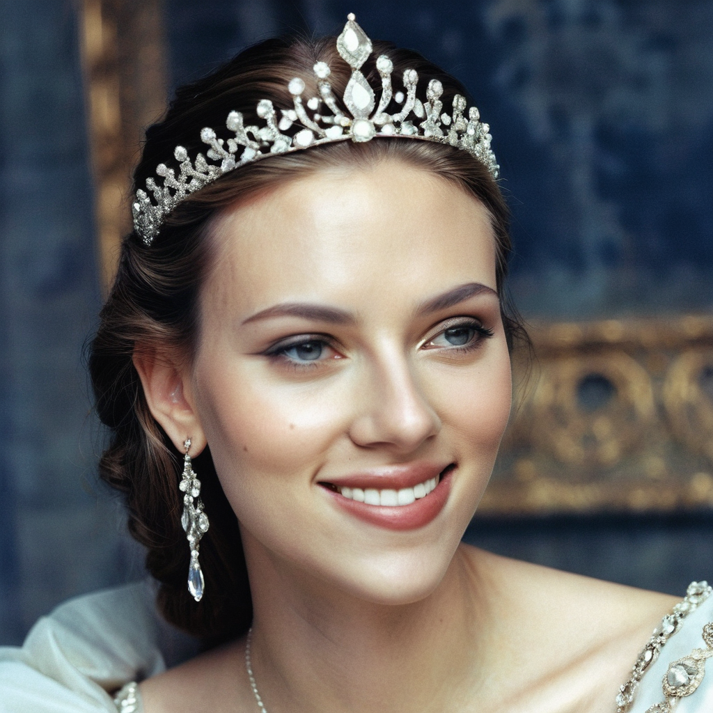 (Skin texture),High quality,Closeup face portrait photo, analog, film grain, actress dressed as a medieval queen with a delicate diamond tiara,regal, bright smile, scxjhnssn, <lora:scjohansson_juggerX_xl_1_st_woc-scxjhnssn-000075:1.0>