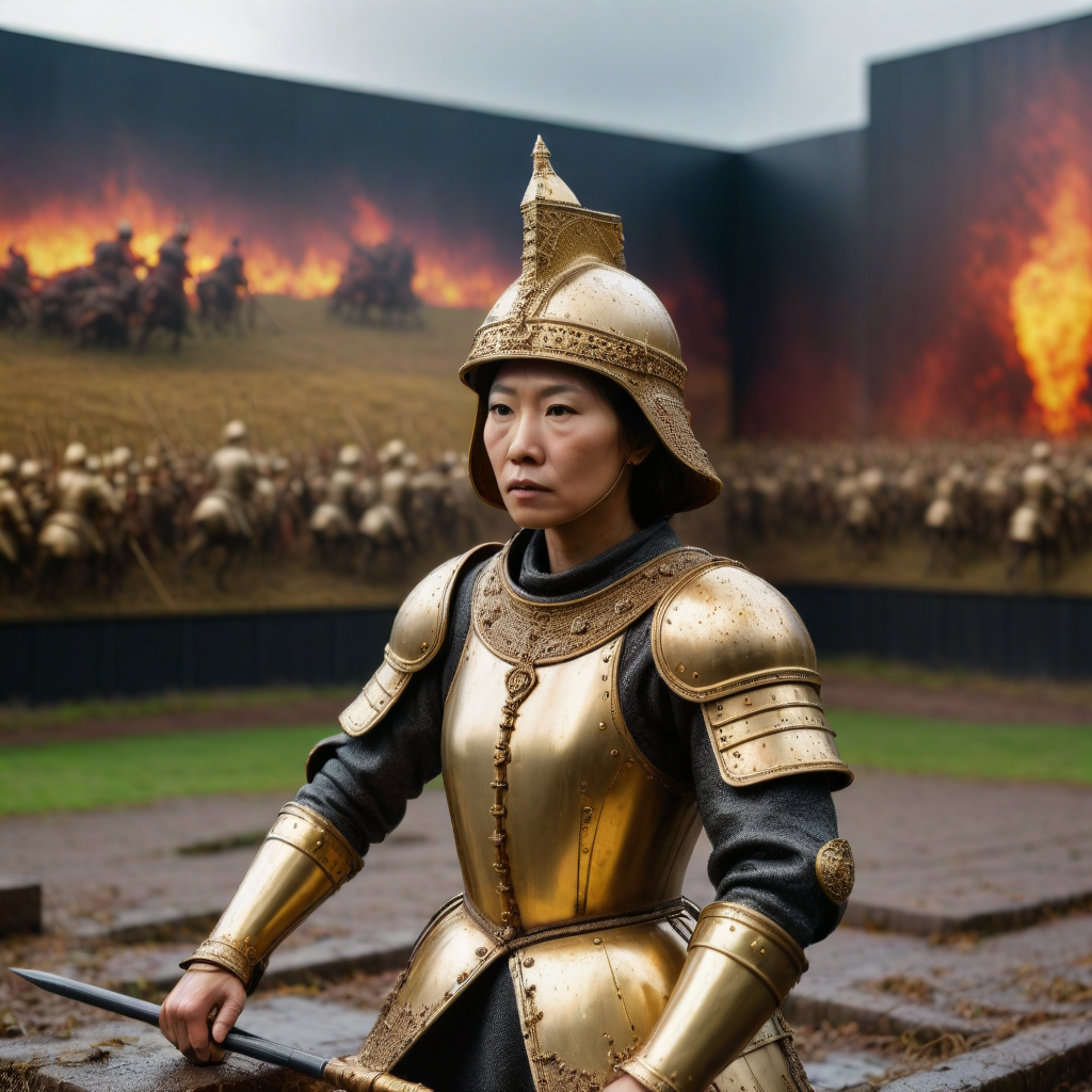 (character art by Helene Knoop:1.3) and (Nam June Paik:1.3) , figurativism art, 8k, Golden ratio, POV shot of a ("The Battle of Agincourt":1.3) , it is very Biochemical and Irritated, near Engaging Underpass, Despicable lava pit and city, Raining, Panorama, Contemporary, Fearful, intricate background, dtx, Nostalgic lighting, macro lens, Single Color, Plain white background, gilded technique, Best quality, hyperdetailed