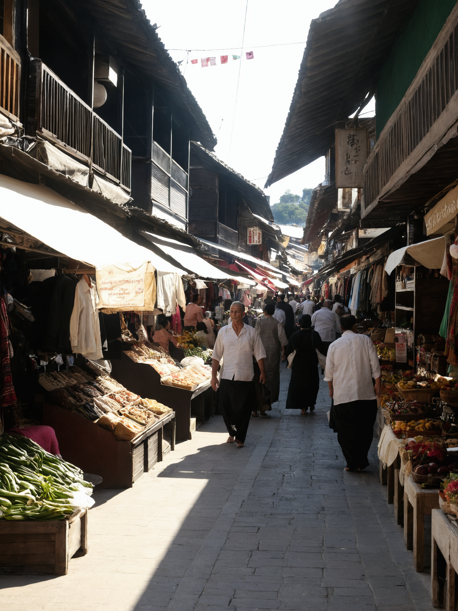 photograph of a street with many open air shops <lora:add-detail-xl:1.9>