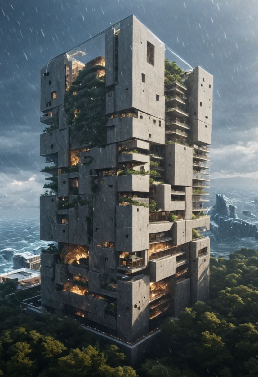 Tower of Babel:1.4, aerial view of an incredibly tall, enchanted renaissance tower made of white to grey limestone, surrounded by ominous woods, rock cliffs, dark fantasy, sunset, architecture, masterpiece, high detail, crisp focus, depth-of-field, (intricate details, masterpiece, best quality:1.3), (avant-garde, future, reality, science fiction, photorealistic), (modern architecture:1.2), (Philip Johnson:1.2), (Ludwig Mies van der Rohe:1.3), (On the Frozen ocean coast, floating icebergs, half inside the glacier:1.1), (Large Files, Ultra Realistic, 8K, 16k, FHD, HD, VFX, Perfect, Photography, composition, Architecture Sales Photography, Architecture Competition, Ultra High Resolution, Cinematography, High Resolution Image:1.1), (dramatic lighting, direct sunlight, ray tracing, clear shadow:1.1), (magnificent , Abstract Expressionism but extremely beautiful:1.2), [:traffic|windows|railing|stair|balcony|terrace|crowd|Sidewalk|vehicle|trees|equipment| detailed signal_details:0.7], [:marble|granite|lbrick|tile|metal|concrete|glass|foliage_material texture:0.7], (real landscape:1.1), (blurred background:1.0), [buildings|BREAK|trees|BREAK|Crowd|buildings|BREAK|trees|BREAK|Crowd|buildings|BREAK|trees|BREAK|Crowd:0.7], (background, more_details:0.3) great lighting, extrusionbuilding, clear, vertical, void