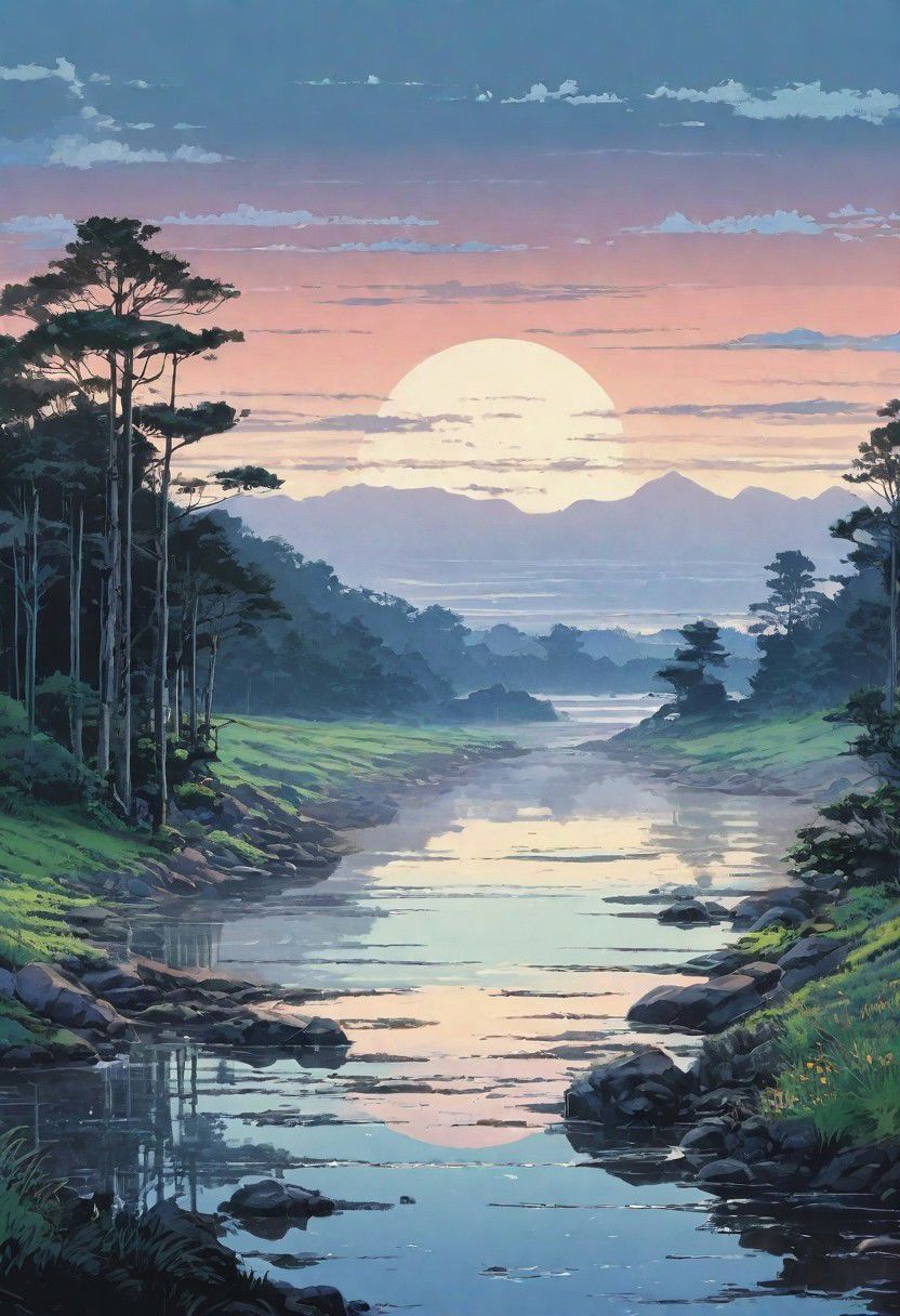 landscape, lo-fi style, epic, different bioms, horizon, different colours palette, pale colors, muted colors, vector, intricate details, highly detailed, soft, acryl, ink painting, strokes, blots, style of makoto shinkai