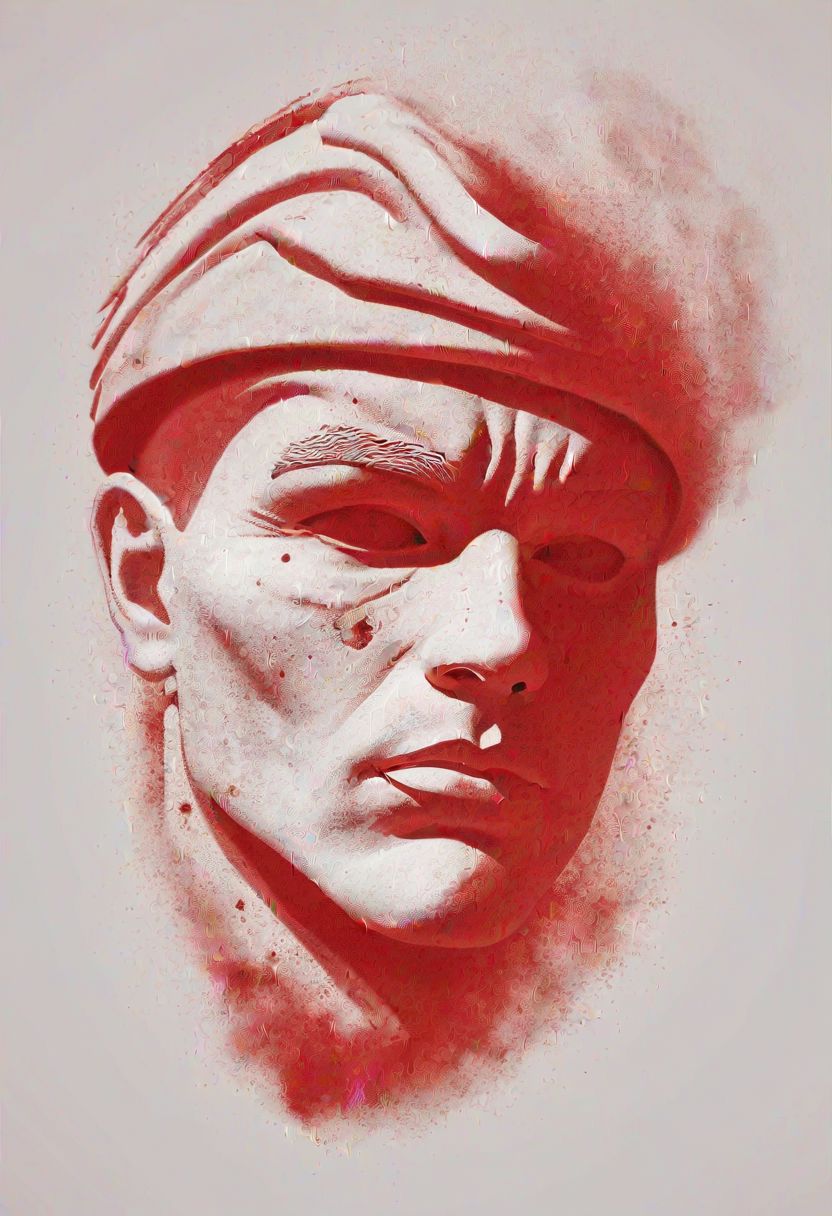 white dust in the air creating a almost hollow silhouette shaped like a human head, (sailor tattoo: 1.3), a red background, highest resolution, 8k, best quality