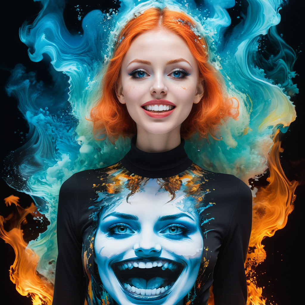 Abstract style side view, hands up, russian woman, holds her hands in front of her, flowers, dress, boho + luxury style, night, summer,forest, happy, smile, painting, oil on canvas, cinematic composition, extreme detail, magic dreamscape in your mind, Double exposure effect of white fox body portrait silhouette, superimposed against burning forest night sky, oil and ink canvas, fine art, super dramatic light, photoillustration, amazing depth, burning particles, hyperdetailed, iridescent blue fire, intricate detailed, amazing depth, hypervibrant, stunning atmosphere, mesmerizing whimsical vibrant scenery, hypermaximalism (Beautiful Outside, Ugly Inside, Stress and Pain, Beauty and Despair, Hard and Soft, Positive and Negative, Hot and Cold, Sweet and Sour, Vibrant and Dull, Perfect Harmony, Light and Dark, Hot and Cold, Old and Young, Fire and Ice, Yin and Yang, Opposites, Black and white, Smoke and Steam,Hot and Cold, Organic and Mechanical, Corresponding colors, Loud and Quiet, Chaos and Peace, Night and Day:1.2) complex masterwork by head of prompt engineering, Christian LacroiÑ , Walter Van Beirendonck, Jean Paul Gaultier, Vivienne Westwood, <lora:xl_more_art-full_v1:1> <lora:SDXL Detail:1>, perfect hands, perfect arms, perfect fingers, neat fingers, unaestheticб, ziprealism, unaestheticXL_Jug6, ziprealism_neg, ac_neg2, ac_neg1, natural skin texture,detailed skin,pores,extreme skin details . Non-representational, colors and shapes, expression of feelings, imaginative, highly detailed