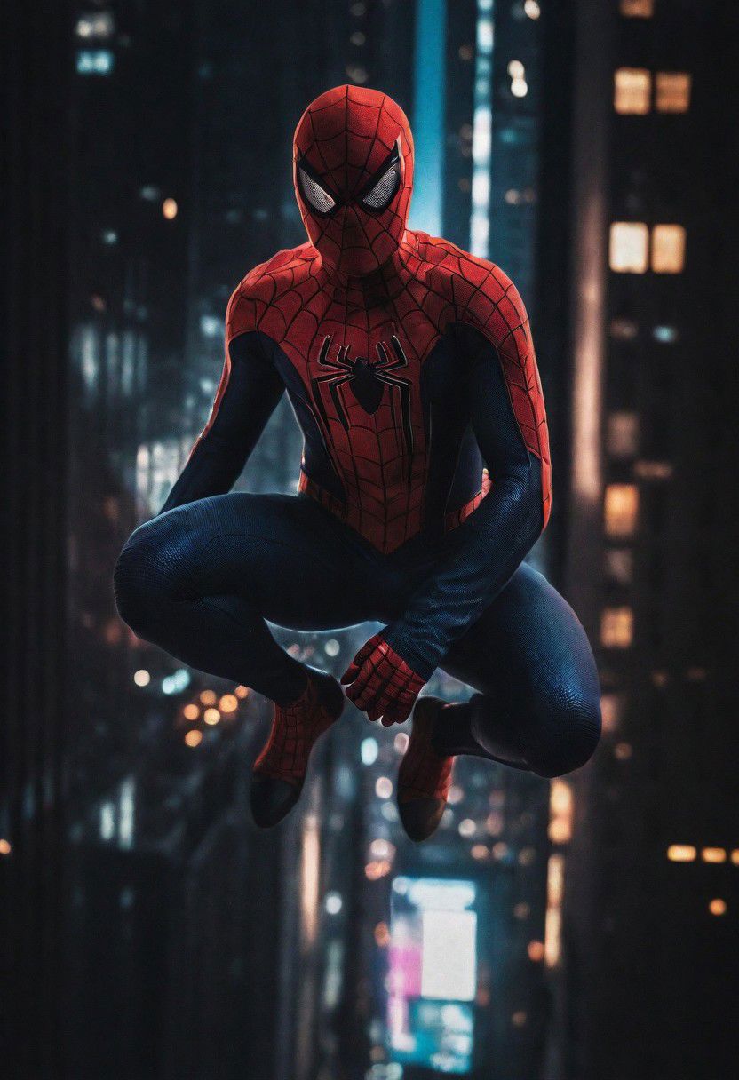 Portrait face Solo spiderman flying in new york , photograph ,pale beautiful photo, ultra detailedspiderman suit , night time, cinematic composition, cinematic filtering