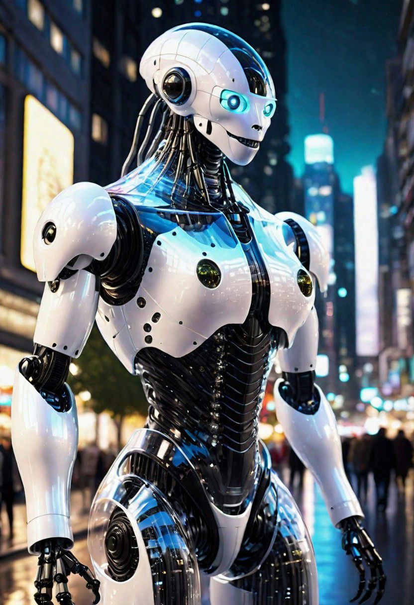 Young [ <'EM_1'> | <'EM_2'> | <'EM_3'> : 0.5] full black and white transparent gelatine Gigant Robot creature in a gelatine in futuristic nigth city , ultradetailed (full gelatine body) <cdt:d1=2;d2=2;hrs=1;hd1=2;hd2=2;st1=0;st2=1>