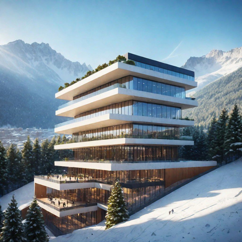 (Shopping malls, department stores, hotels and commercial offices in the snow-capped mountains and coniferous forest:1.3), (avant-garde, future, reality, science fiction, photorealistic), (modern architecture:1.2), (Kan Kankavee:1.2), (David Alan Chipperfield CH:1.3), (Large Files, Ultra Realistic, 8K, 16k, FHD, HD, VFX, Perfect, Photography, composition, Architecture Sales Photography, Architecture Competition, Ultra High Resolution, Cinematography, High Resolution Image:1.1), (dramatic lighting, direct sunlight, ray tracing, clear shadow:1.1), (magnificent , Abstract Expressionism but extremely beautiful:1.2), [:traffic|windows|railing|stair|balcony|terrace|crowd|Sidewalk|vehicle|trees|equipment| detailed signal_details:0.7], [:marble|granite|lbrick|tile|metal|concrete|glass|foliage_material texture:0.7], (real landscape:1.1), (blurred background:1.0), [buildings|BREAK|trees|BREAK|Crowd|buildings|BREAK|trees|BREAK|Crowd|buildings|BREAK|trees|BREAK|Crowd:0.7], (background, more_details:0.3) great lighting, void, clear, stacked, vertical