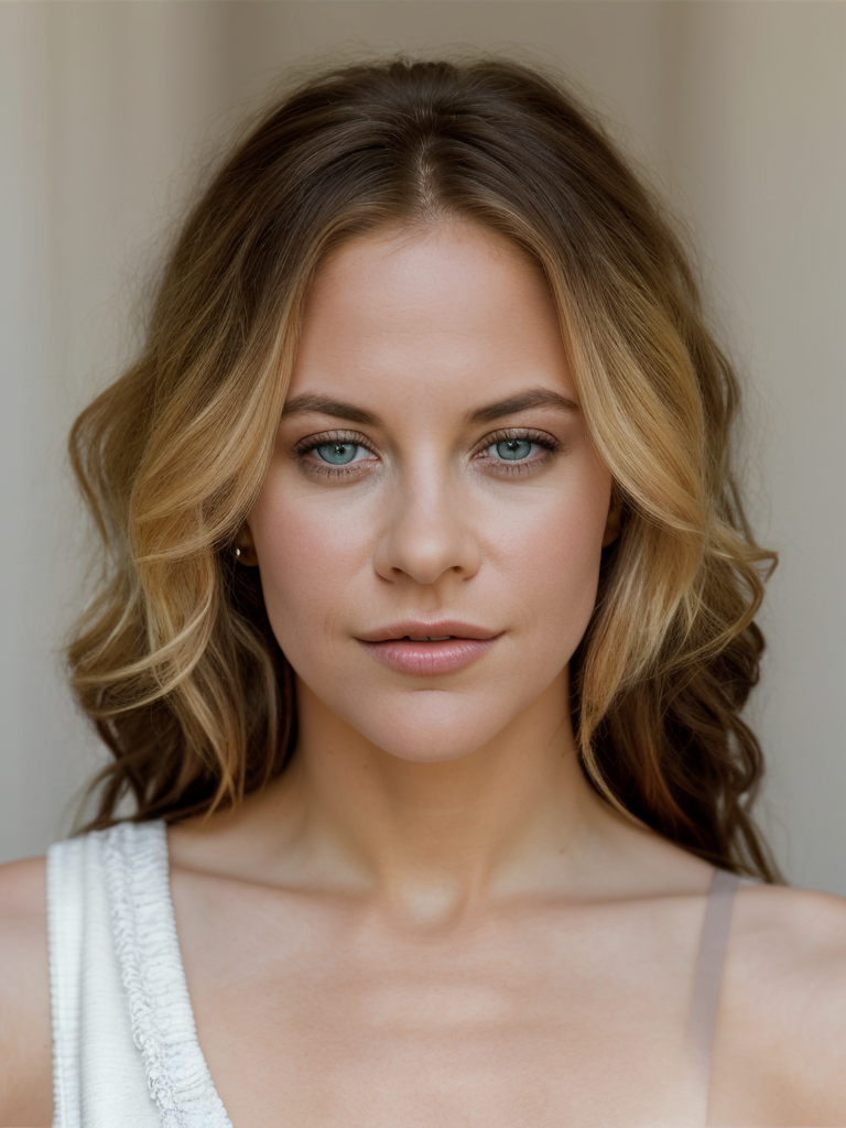 Realistic photo of a beautiful m3gr-v2 woman, 1girl, solo, long hair, blue eyes, blonde hair, simple background, white background, dress, bare shoulders, sitting, parted lips, white dress, lips, realistic, soft lighting, professional Photography, Photorealistic, detailed, RAW, analog, sharp focus, 8k, HD, high quality, masterpiece<lora:m3gr-v2:1.0>