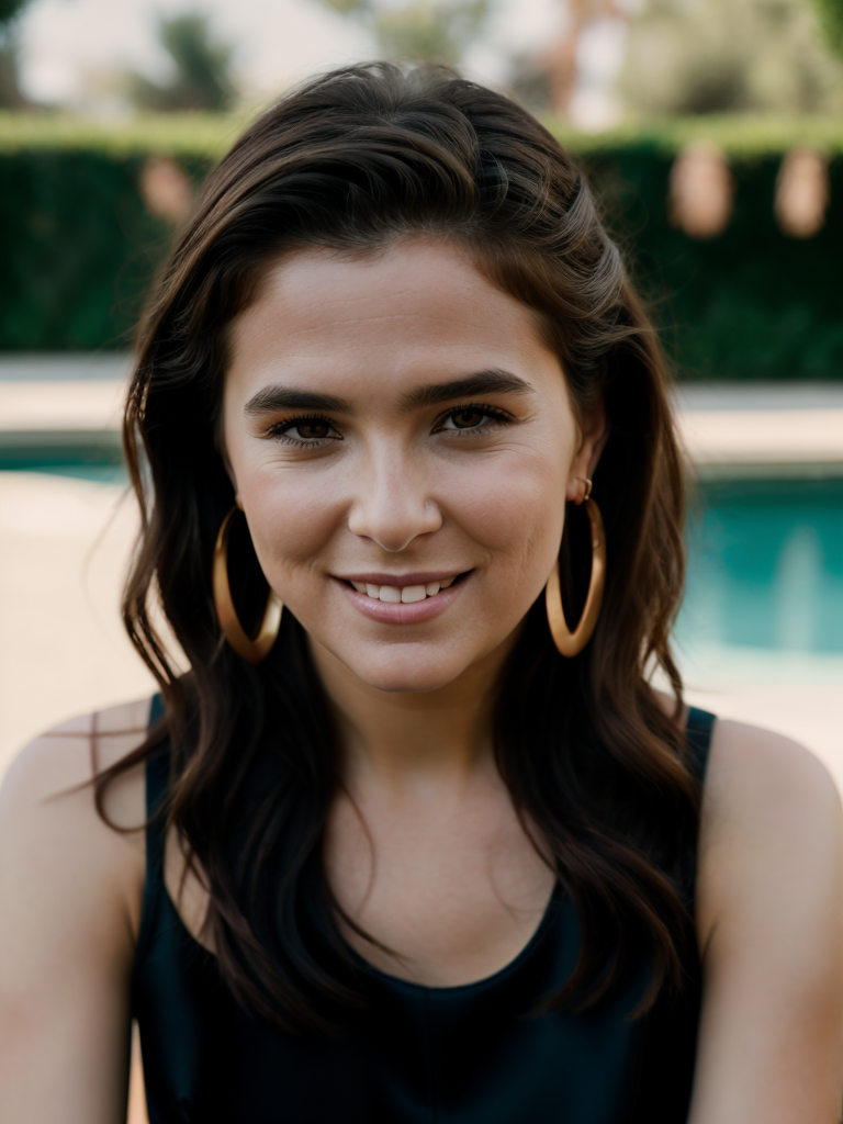Realistic photo of a beautiful z03yd woman,1girl,solo,long hair,looking at viewer,smile,simple background,brown hair,dress,bare shoulders,brown eyes,jewelry,upper body,earrings,sleeveless,black dress,lips,sleeveless dress,crossed arms,black background,realistic,nose, soft lighting, professional Photography, Photorealistic, detailed, RAW, analog, sharp focus, 8k, HD, high quality, masterpiece<lora:z03yd:1.0>