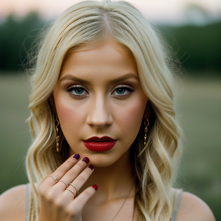 <lora:cr1st1n4:1>, Realistic photo of a beautiful cr1st1n4 woman, 1girl, solo, long hair, looking at viewer, (((blonde hair))), jewelry, flower, earrings, nail polish, lips, makeup, ring, lipstick, realistic, soft lighting, professional Photography, Photorealistic, detailed, RAW, analog, sharp focus, 8k, HD, DSLR, high quality, Fujifilm XT3, film grain, award winning, masterpiece