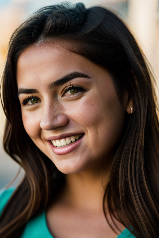 Realistic photo of a beautiful 4n4d34rm4s-v2 woman, 1girl, solo, long hair, looking at viewer, smile, makeup, simple background, brown hair, shirt, green eyes, upper body, teeth, mole, grin, lips, black shirt, portrait, realistic, nose, soft lighting, professional Photography, Photorealistic, detailed, RAW, analog, sharp focus, 8k, HD, DSLR, high quality, Fujifilm XT3, film grain, award winning, masterpiece<lora:4n4d34rm4s-v2:1.0>