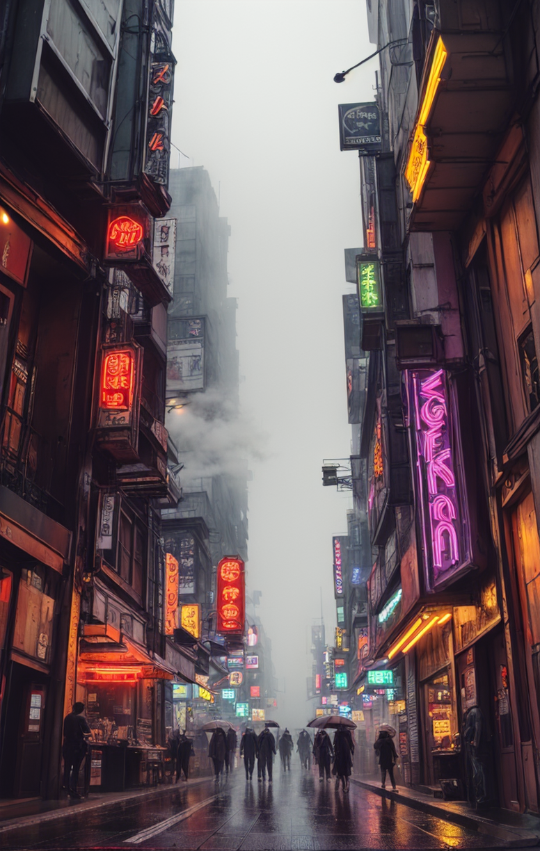 dense comerce street, neon light, masterpiece, ultra realistic, beautiful, rainy, cyberpunk , latenight, disperse fog distance, isometric view perspective,1