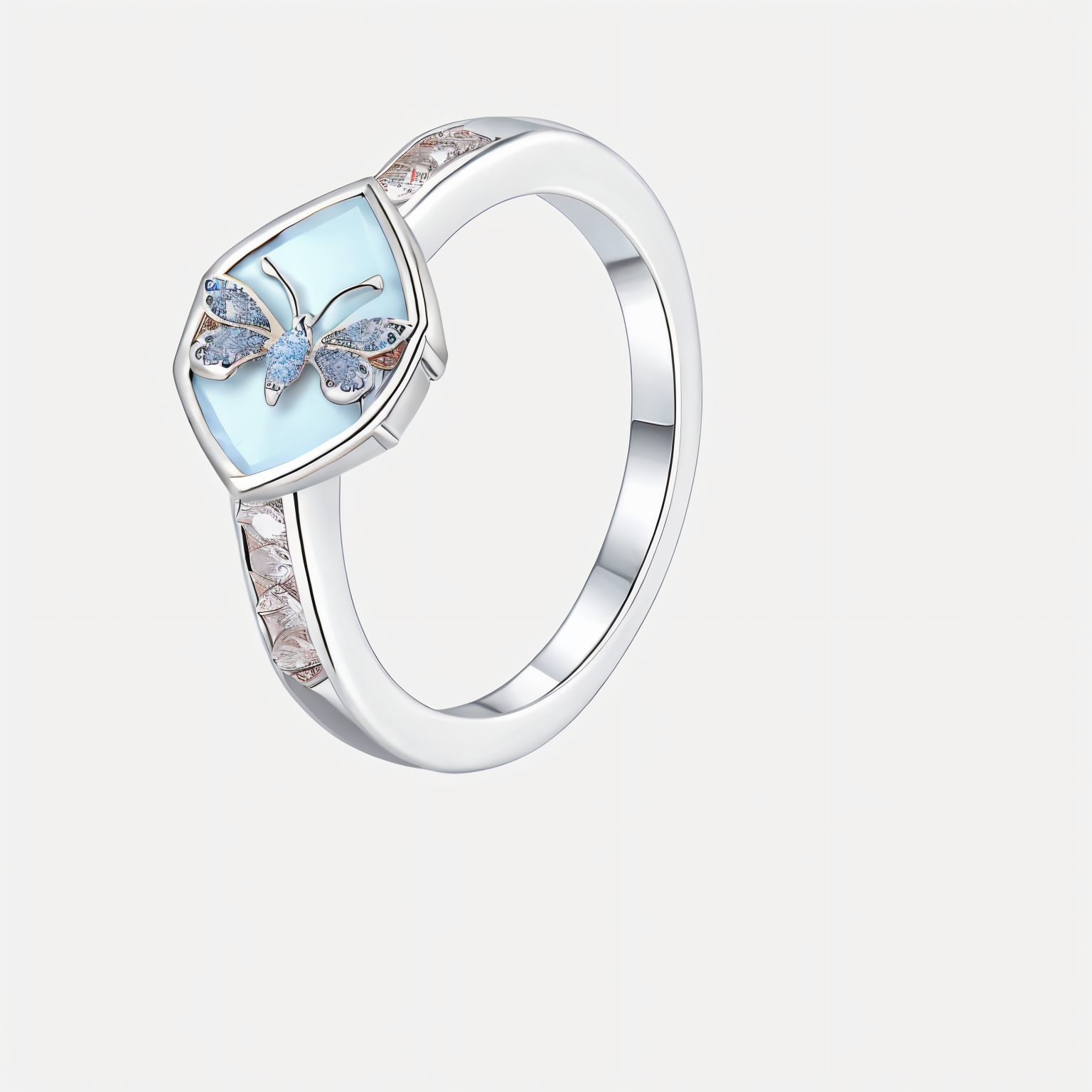 ajd, ring, sliver ring, diamond trimmed ring, Butterfly-shaped Ring ,white background, simple background,, no humans, <lora:ringv1:1>