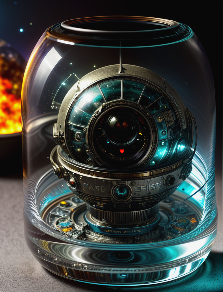 outer space, cool sci-fi scene, ((all captured in a small glass cube on a desk)),24mm, 4k textures, soft cinematic light, adobe lightroom, photolab, hdr, intricate, elegant, highly detailed, sharp focus, ((((cinematic look)))), soothing tones, insane details, intricate details, hyperdetailed, low contrast, soft cinematic light, exposure blend, hdr, faded, <lora:more_details:.8>, <lora:wowifierV3:.8>, (atompunkstylesd15:.99)