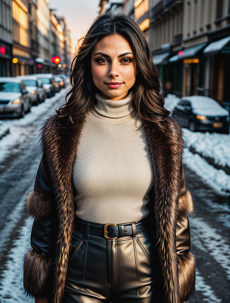 beautiful woman (morb4cc4r1n:.99), beautiful hair, winter Paris, elegant, snowing, natural skin texture, (fashionable fur coat), ((turtleneck)), ((designer pants)), sunset, cute smile, 24mm, 4k textures, soft cinematic light, adobe lightroom, photolab, hdr, intricate, elegant, highly detailed, sharp focus, ((((cinematic look)))), soothing tones, insane details, intricate details, hyperdetailed, low contrast, soft cinematic light, exposure blend, hdr, faded<lora:more_details:.6> <lora:wowifierV3:.6>