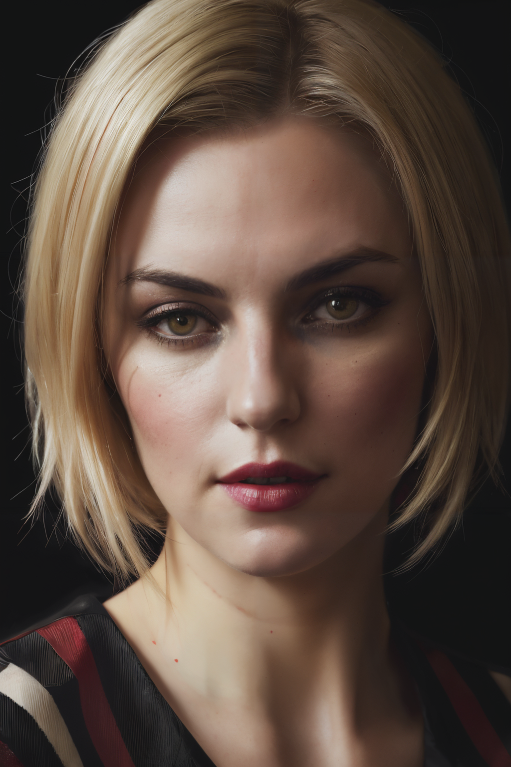 portrait photo of mmt,(black and red striped shirt), (dirty blonde hair), alluring portrait, intricate, highly detailed, digital painting, artstation, concept art, naughty, sharp focus, cinematic lighting, illustration, art by artgerm and greg rutkowski, alphonse mucha, cgsociety, <lyco:MichelleMylett-RealVision-V1.0:1.0>