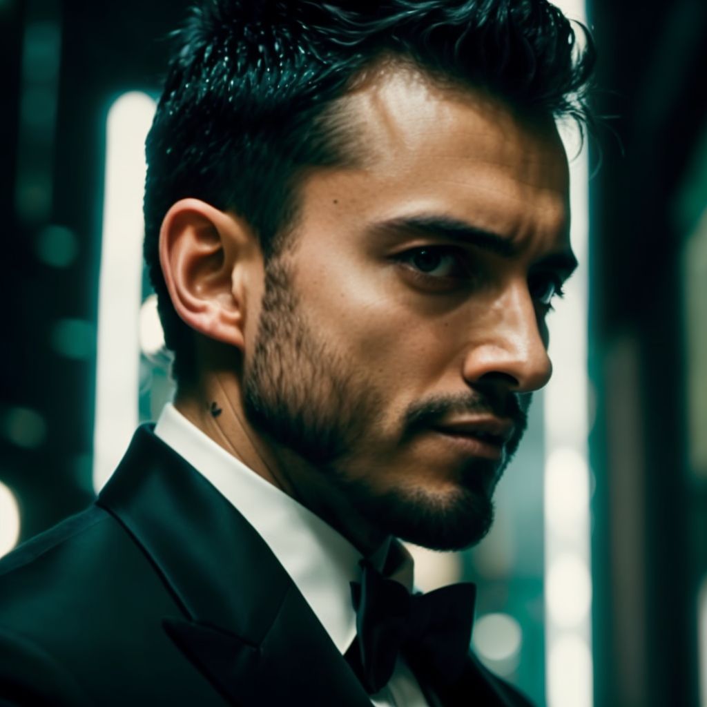 face portrait of geroimparable person using a tuxedo, in blade runner, professional photography, high resolution, 4k, detailed photo, <lora:geroimparable_21600:1>