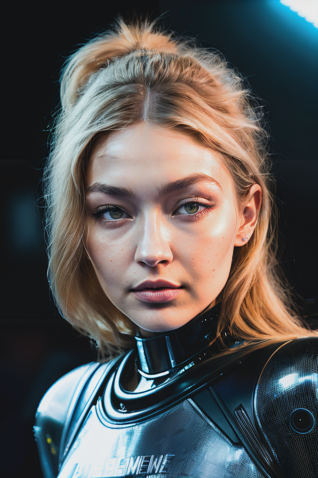 gigiHad1 , ((best quality)), ((masterpiece)), (detailed), Midjourney Style, close-up, woman, robot, red eyes, concept art, inspired by Marek Okon, digital art, Crysis Nanosuit, futuristic, (glowing elements:1.1), 4:3 aspect ratio, dynamic duo
