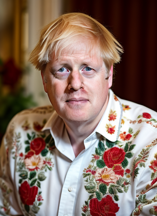 (masterpiece, best quality, awards winner) close up portrait Boris Johnson former Deputy Prime Minister of Great Britain dressed in embroidered shirt sing song, (floral embroidery, floral print, pointing)t, epic character composition, by ilya kuvshinov, alessio albi, nina masic, sharp focus, natural lighting, subsurface scattering, f2, 35mm, film grain, <lora:edgVyshivanka:0.7> <lora:boris:1>