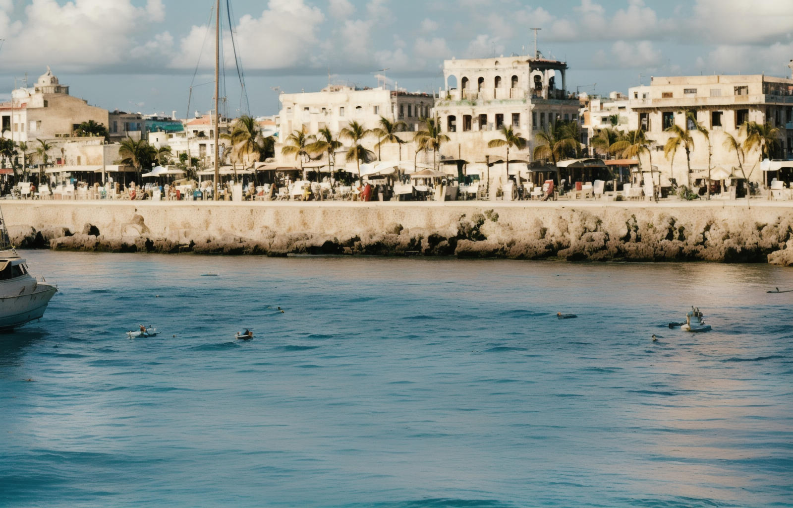 amateur photo of (Havanna:1.2), Cuba in the (1970ties:1.3), (coast and sea:0.9), colorful buildings, panorama, palm trees, (old city:1.1), sea, cliffs, beach, azure, bay, sunny, no clouds, cinematic lighting, golden hour, god rays, 8K, (highly detailed:1.5), (ultra-realistic:1.5), Kodak, (ag200:1.2) (film grain) <lora:Analog Style Agfa:0.88>