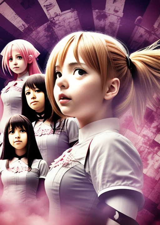 6+girls, superhero, mahou shoujo madoka magica movie 1 & 2, movie poster,