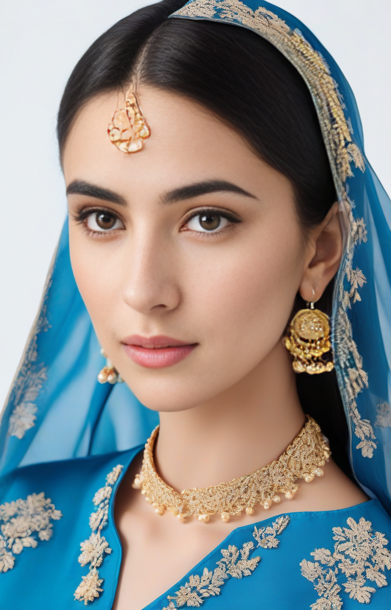 glamor photo of a 25_year old desilatte woman, studio quality, in a blue pakistani dress, canon 5D, realistic skin texture, skindentation, flat white background, <lora:DesiCoffee_SDXL_20_LoRA:1> <lora:pakistanidress:0.7>