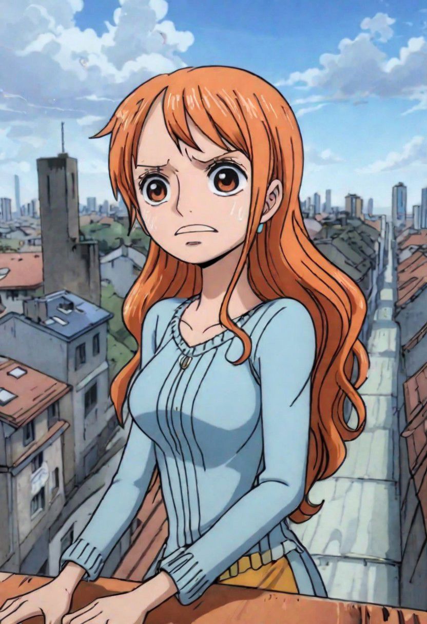 A girl (Long hair:1.0) on the edge of the ledge of the roof of a very tall building about to jump off ((Cry)) while looking at the height,8k,35mm, detailed face, detailed eyes, detailed background ,Old,Draw,3D,Ilustration