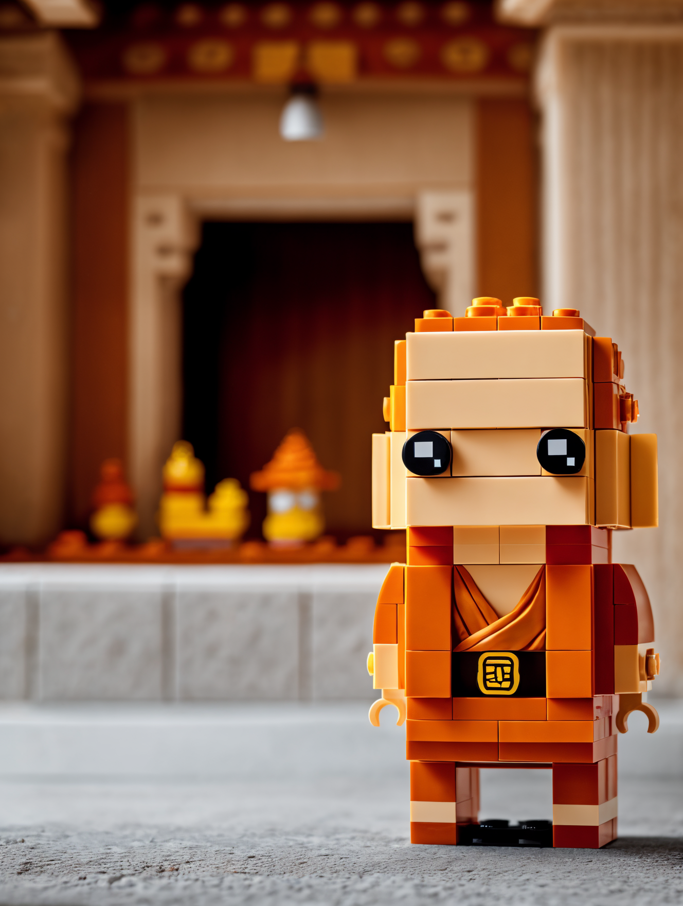 RAW photo, <lora:lego_v2.0.768-000035:0.8> LEGO BrickHeadz, a monk in a temple, (high detailed skin:1.2), 8k uhd, dslr, soft lighting, high quality, film grain, Fujifilm XT3