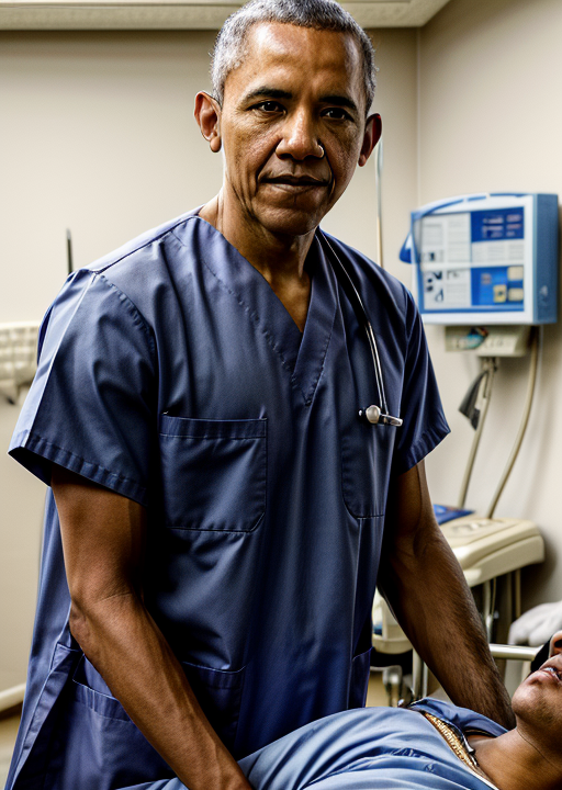 best quality, masterpiece, highres, detailed, perfect anatomy, Barack Obama working as a male nurse in a hospital, 1boy, nurseCH , blue uniform, <lyco:NurseCHV1:0.7>