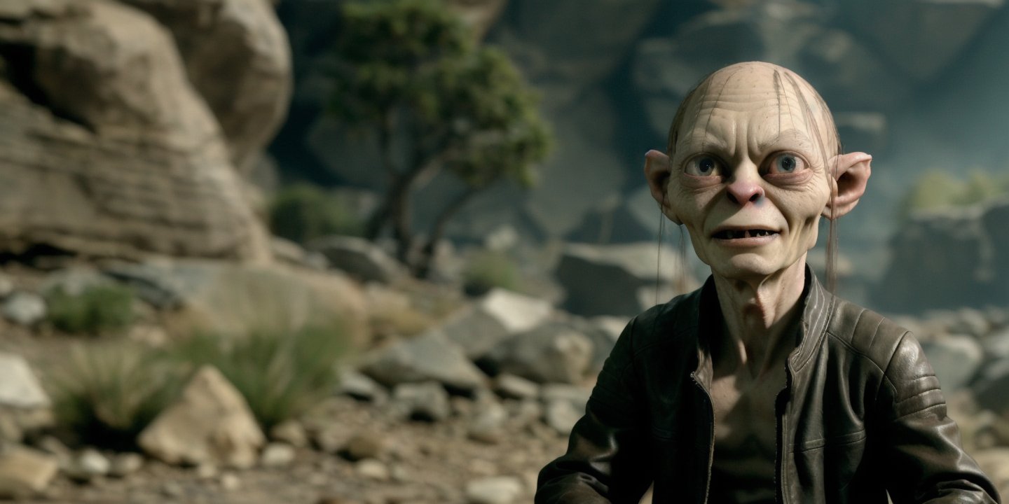 portrait of smeagol, (riding a motorcycle:1.2), wearing a leather jacket, sharp, amazing, bokeh, canon dslr, realistic, movie still, side view <lyco:smeagol_v2.0:1>