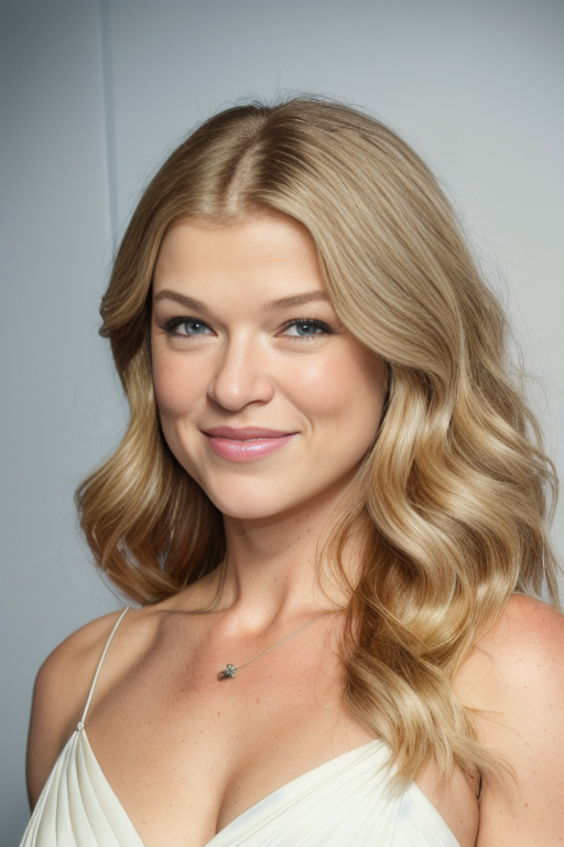 photo of a AdriannePalicki1, , hair, (white studio wall), smile, detailed face, intricate, elegant, sharp focus, photo by, soft lighting, vibrant colors, masterpiece, detailed face, beautiful ,