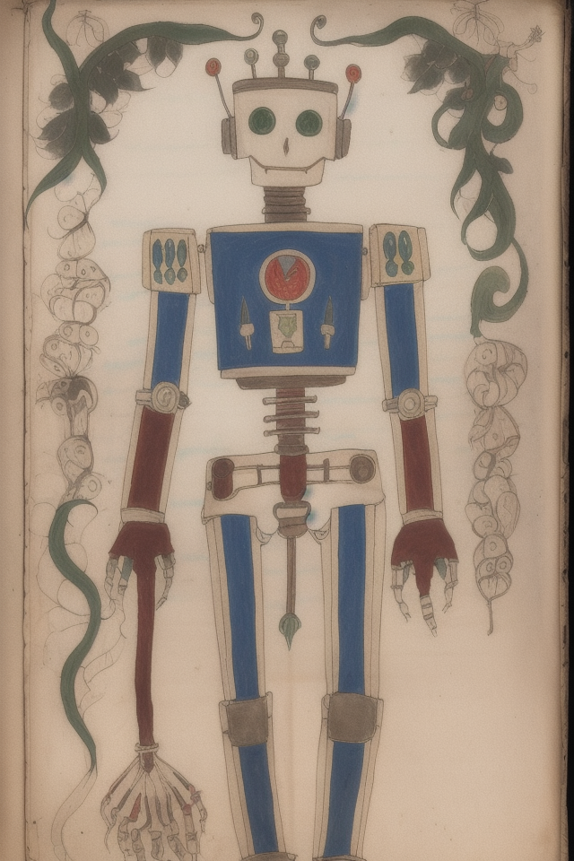 a robot by VoynichManuscript <lora:VoynichManuscript:1>