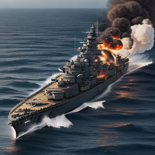 Japanese Battleship Yamato, ((Cannon Firing)) , Epic battle scene, ships at sea, cannons firing, (bombs), (explosions), ((smoke fragments)) , Highly Detailed, (((Shooting))), Large Ship (1) in Water, Sailing, Full of Hidden Details, Extreme Angles, Historical Accuracy, Color, Textured, Embossed,(((( High Detail)))), Vibrant Colors, 8K, Sharp ,Professional ,Clear ,High Contrast ,High Saturation ,Deep Vibrant Black ,Crystal,<Laura:Ruin:0.8>,Mid-Sea,Raging Wave War Scene The warship moves left and right, (((Shooting location from the top of the warship))), Fine details of the warship , There are no other ships except her, the shooting location is in front of the warship, there is a golden chrysanthemum logo, good background details 4K, strong wind , Battle line, epic battle firing cannons at each other, visible cannon shots, fire, (((explosions))),)+( lots of destruction), adventure, detailed, historical.