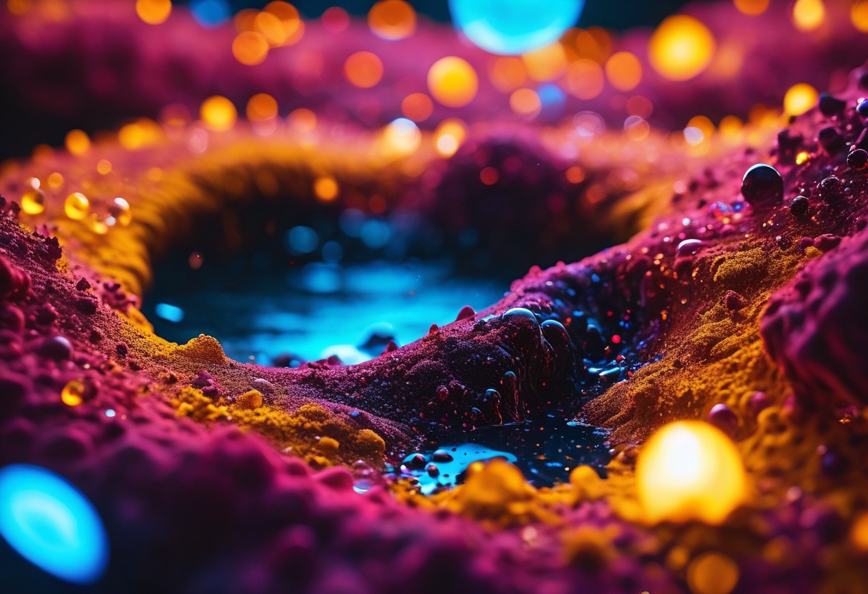 (pitch dark midnight:1.2), (vast expansive completely viscous liquid dreamscape goopy organic surface material with gleaming:1.4) sap, (multicolor vibrant RGB spectrum blended mixing:1.2), (lava:0.4) (lamp, swirling amorphous liquid rising bubbling into sky hovering, bioluminescent glowing:1.28) particles, (sloshing backwash), non-newtonian (fluid:1.24), (prismatic color grading), 4k, highres, best quality, dramatic, cinematic, epic, (concept art, digital art, realistic, professional masterpiece, dynamic, (curvilinear perspective), tilt shift, iris blur, bokeh, sharp clarity:1.2), zavy-flrscnc, fine intricate details, interior lit, great lighting, dappled soft lighting, volumetric lighting, detailed highlights, rim lighting