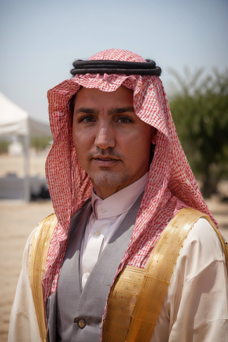 RAW photo, jtrudeau wearing a traditional saudi arabian outfit, 8k uhd, dslr, high quality, film grain, Fujifilm XT3, <lora:justin_trudeau_5:0.55>,