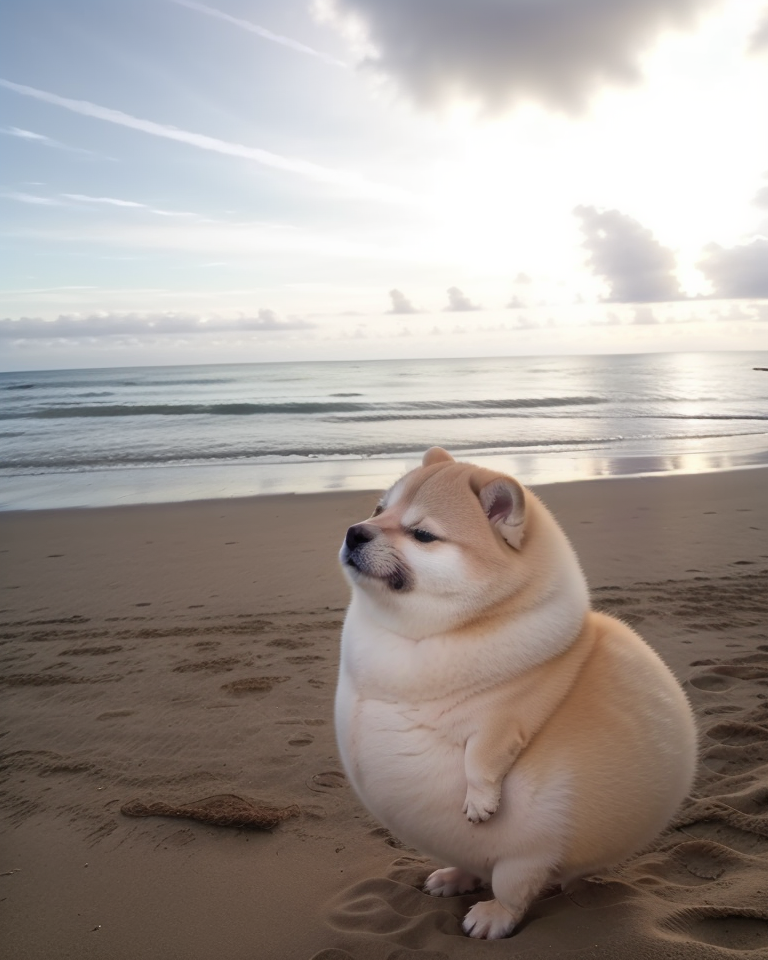 small cute cheems kawaii <lora:BBCheems_10_10:.8> outdoors standing on the beach <lora:weight_slider_v2:2.5> cinematic beautiful sunset <lora:skin_tone_slider_v1:-5>