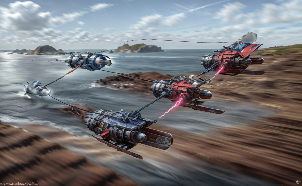 podracing, red vehicle, best quality, highly detailed, ocean background, <lora:podracing_10_1:0.9>