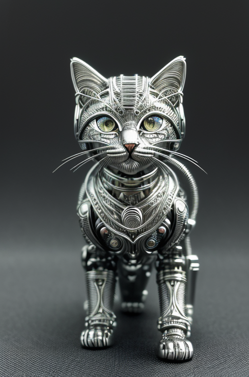 a cute kitten made out of metal, (cyborg:1.1), ([tail | detailed wire]:1.3), (intricate details), hdr, (intricate details, hyperdetailed:1.2), cinematic shot, vignette, centered