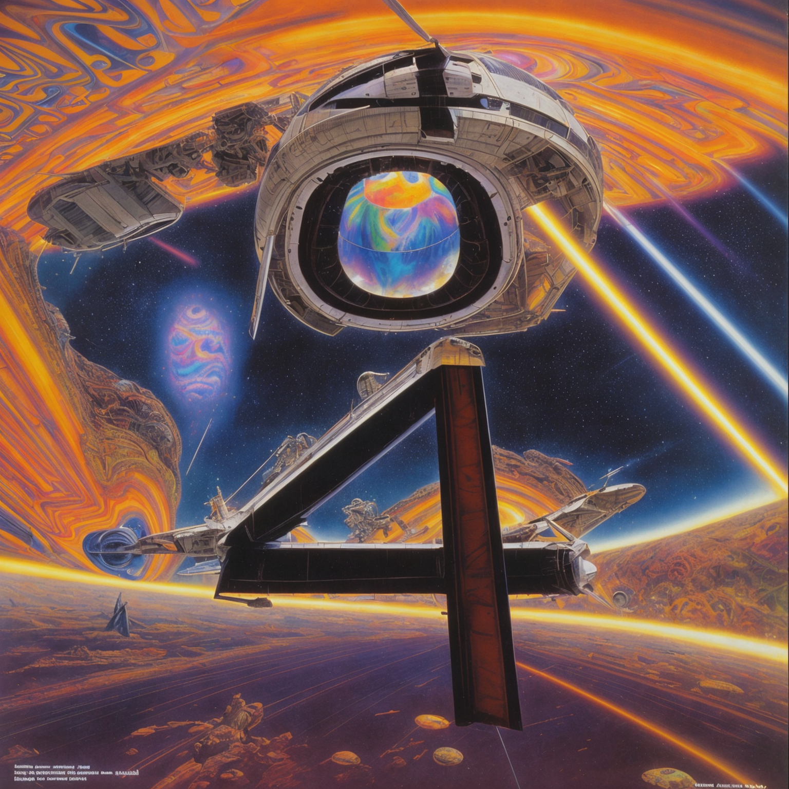 cover of a magazine, on the cover of a 1980s science fiction magazine by noriyoshi ohrai, syd mead, Robert mcguiness, (psychedelic:1.3)